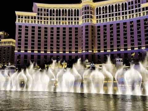 Just one block west—easy walking or a free shuttle to Caesars for fountains and more.
